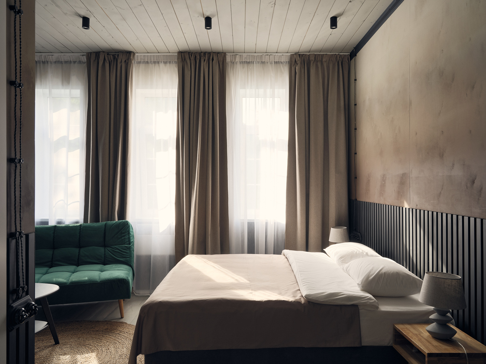 Стандартный Одна комната: спальня совмещена с зоной отдыха. Просторный номер (20 м2), в котором есть всё, что вам нужно. Здесь с комфортом может разместиться семья с ребёнком. Подробнее